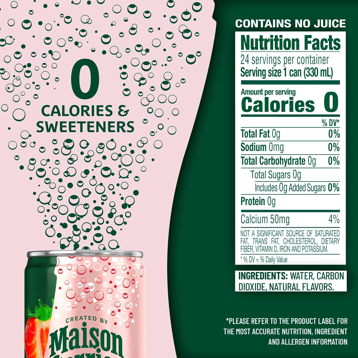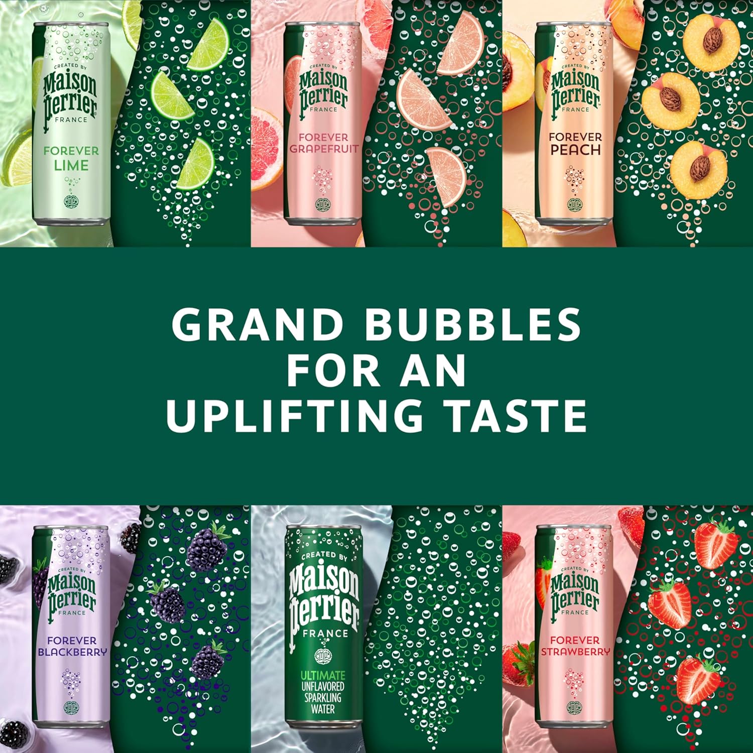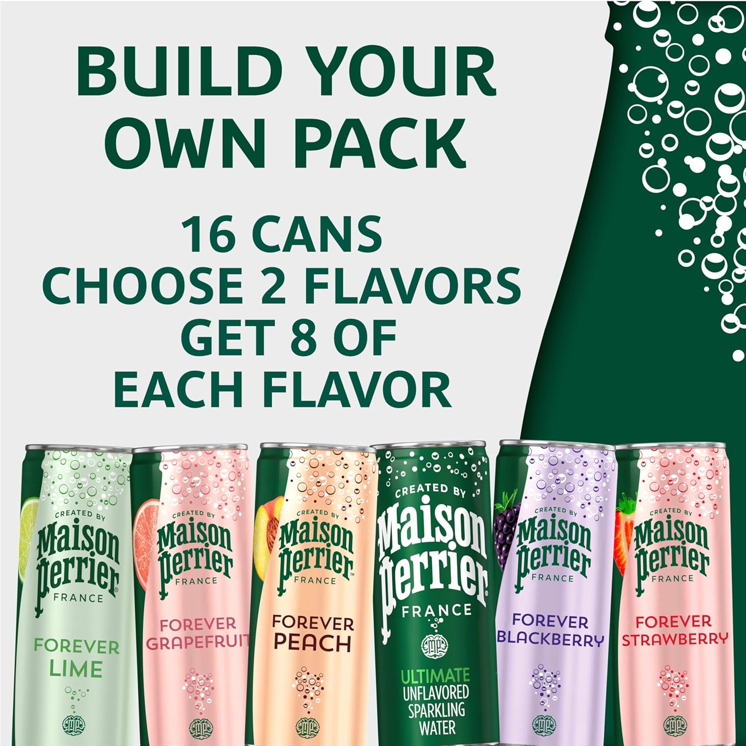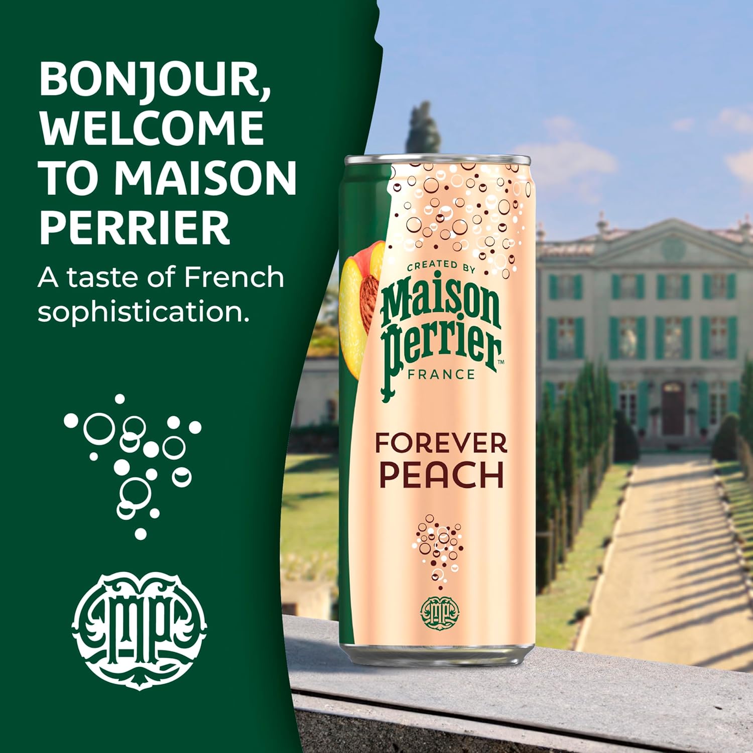 Indulge in a refreshing burst of flavor and bold bubbles with Maison Perrier Forever Lime Flavored Sparkling Water. A new premium sparkling water inspired by the iconic legacy of Perrier, Maison Perrier is an unsweetened sparkling water with natural flavors. French and sophisticated, Maison Perrier lime flavored sparkling water is bottled in Vergeze, France. This lime flavored sparkling water contains zero calories and sweeteners, making it a great alternative to sugary soda, tonic water, seltzer water, other carbonated water or club soda water. Maison Perrier sparkling water is a deluxe water that is the perfect ingredient for extraordinary mixed drinks or delicious non-alcoholic mocktails. Enjoy one at home or on the go. For peak refreshment, enjoy these cans of sparkling water slightly chilled. For more refreshment from the makers of Perrier water, try other delicious flavors, including Maison Perrier Peach Flavored and Maison Perrier Blackberry Flavored Sparkling Water. Delight your taste buds with this Maison Perrier Forever Lime Flavored Sparkling Water. Forever irresistible. Forever flavorful. Forever Lime.