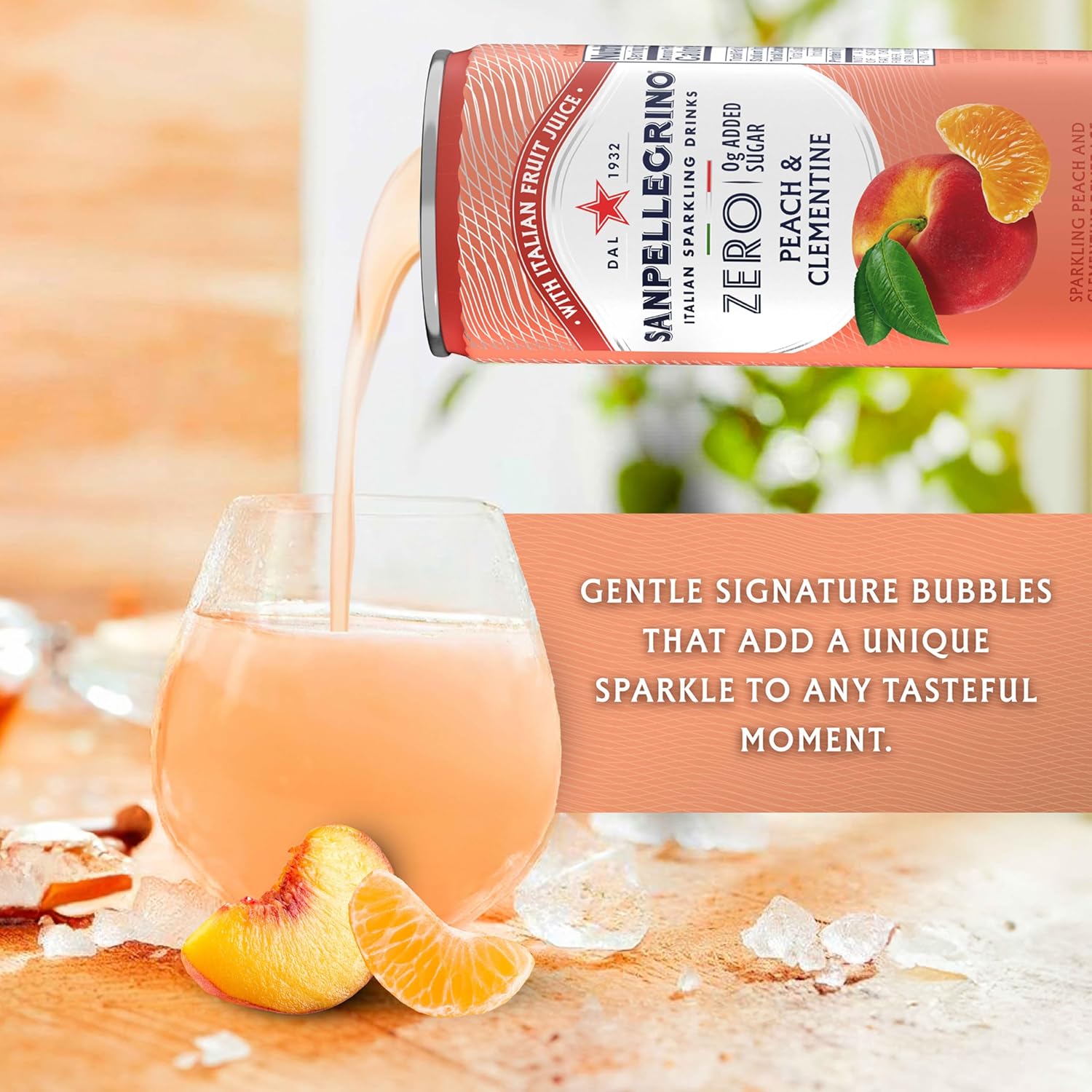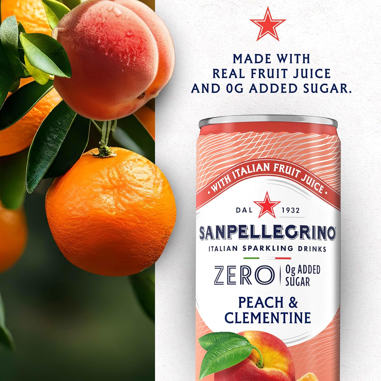 Introducing Sanpellegrino Zero Grams Added Sugar Peach Clementine Italian Sparkling Drink, a refreshing and satisfying drink that will keep you hydrated and delighted. Our pack of 11.15 Fl Oz cans is perfect for enjoying at home, at work, or on the go. Made with real fruit juice for an authentic Italian refreshment. San Pellegrino is a great low-calorie alternative to sugary drinks, offering the same crisp and invigorating taste without any added sugar. This zero-added sugar option is perfect for those looking to cut back on their sugar intake while still enjoying a delicious and refreshing drink. Our Sanpellegrino Zero Grams Added Sugar Peach Clementine Italian Sparkling Drink is also a great choice for those seeking flavorful drink o ptions. With its versatile range of flavors, including Peach Clementine and other fruit-juice infused options, Sanpellegrino Italian Sparkling Drinks ensure there’s something for everyone to enjoy. These beverages are packaged in convenient cans, making them easy to take with you wherever you go. Treat yourself to the delightfully bubbly experience of Sanpellegrino Zero Grams Added Sugar Peach Clementine Italian Sparkling Drink today